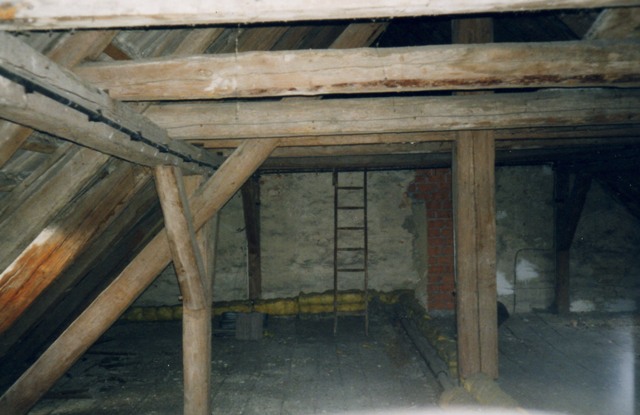 Der Kindergarten vor dem Umbau und dem Neubau der Ringstraße. | Die Rückansicht des Kindergartens. | Ansicht von links | Dachboden |