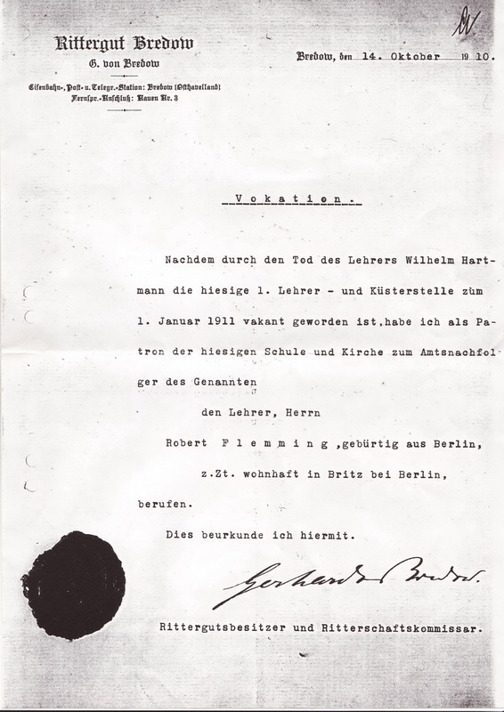 Pfarrer in Bredow. Sein Vorgänger war