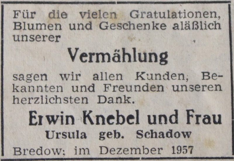 * 10.03.1920, † 01.11.1972, # in Bredow