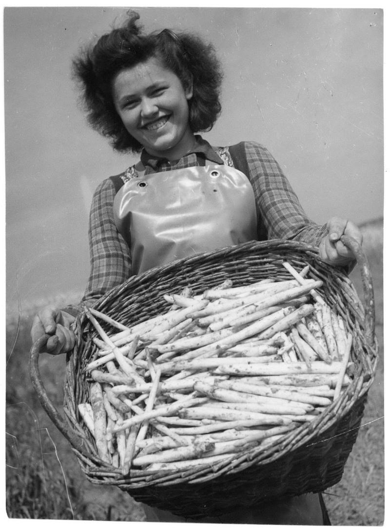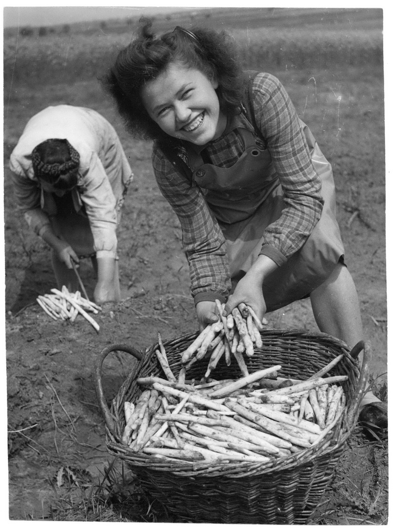 Im Jahre 1951 vom Fotografen Heinz Krüger aus Falkensee bei der Spargelernte fotografiert.